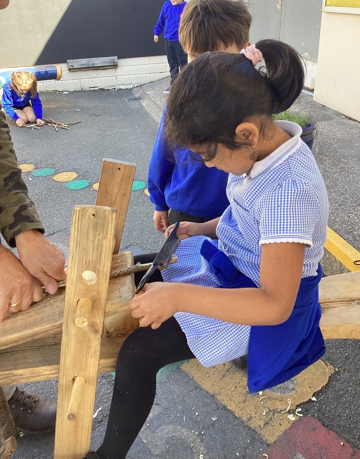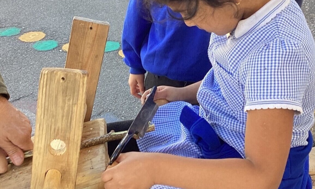 🔪 With whittling knives, learners practiced patience and focus, turning simple sticks into works of art.