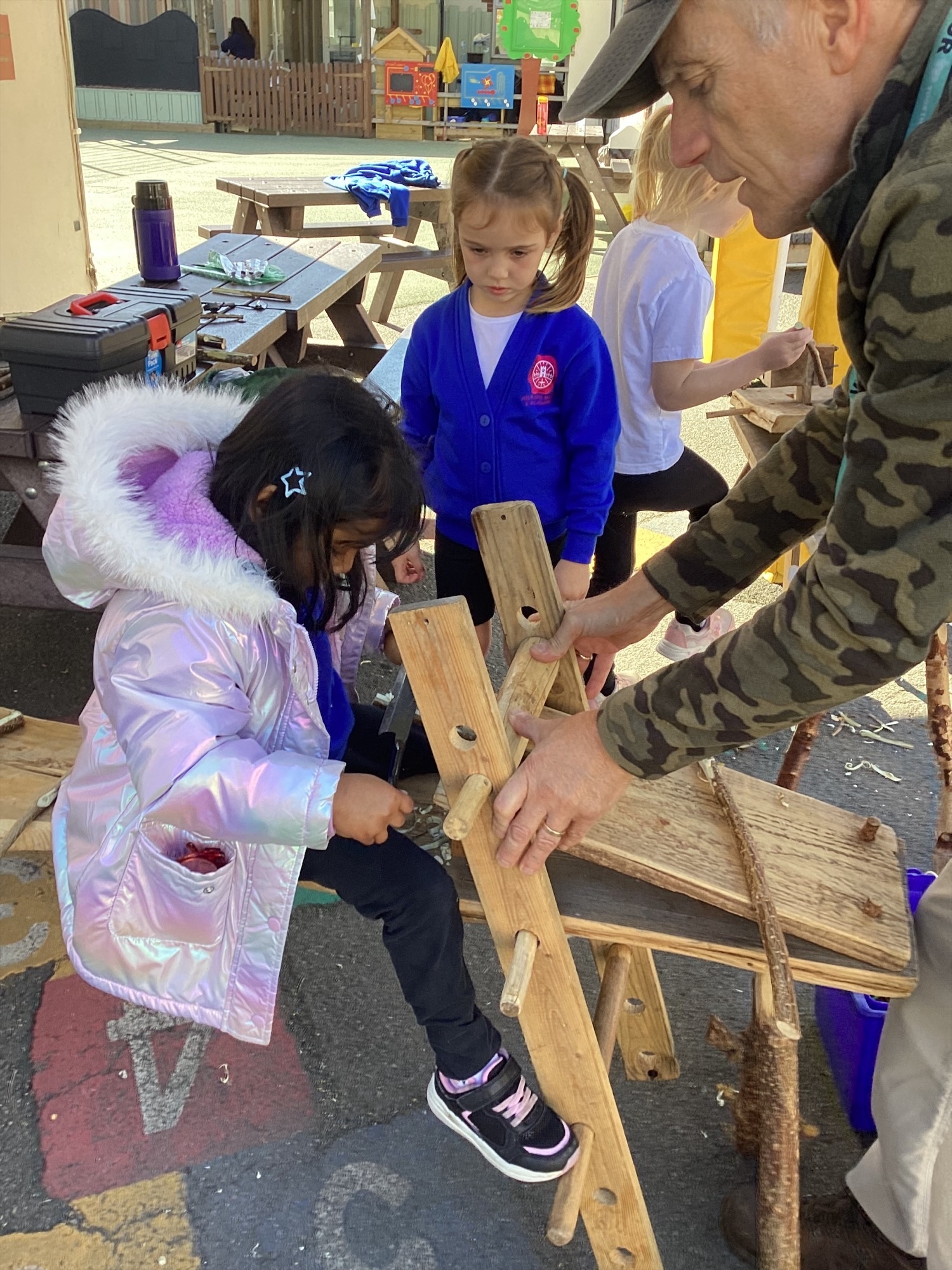 🪵 Using the shave horse, we shaped wood into useful and creative pieces.